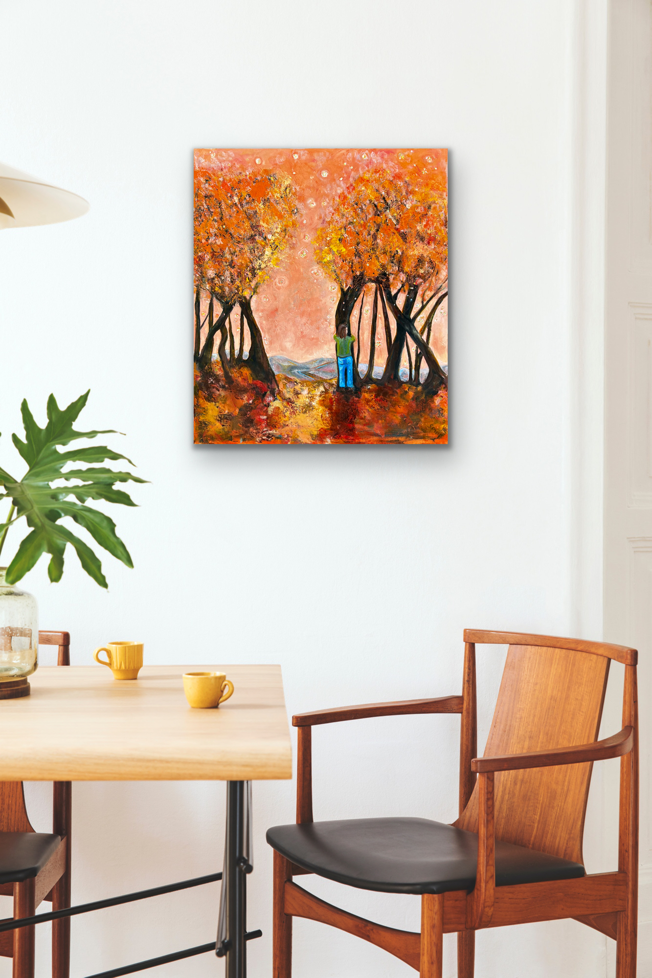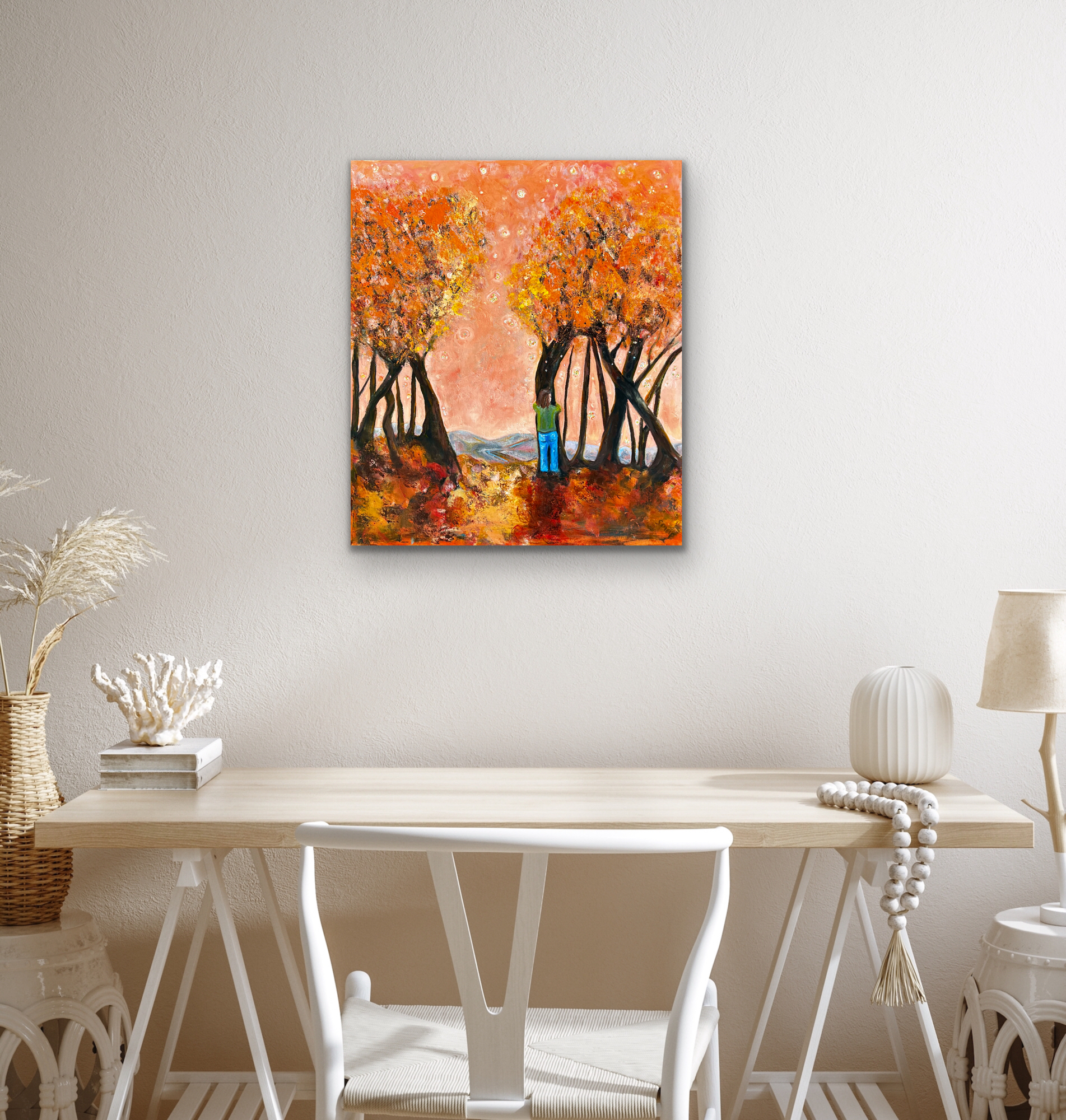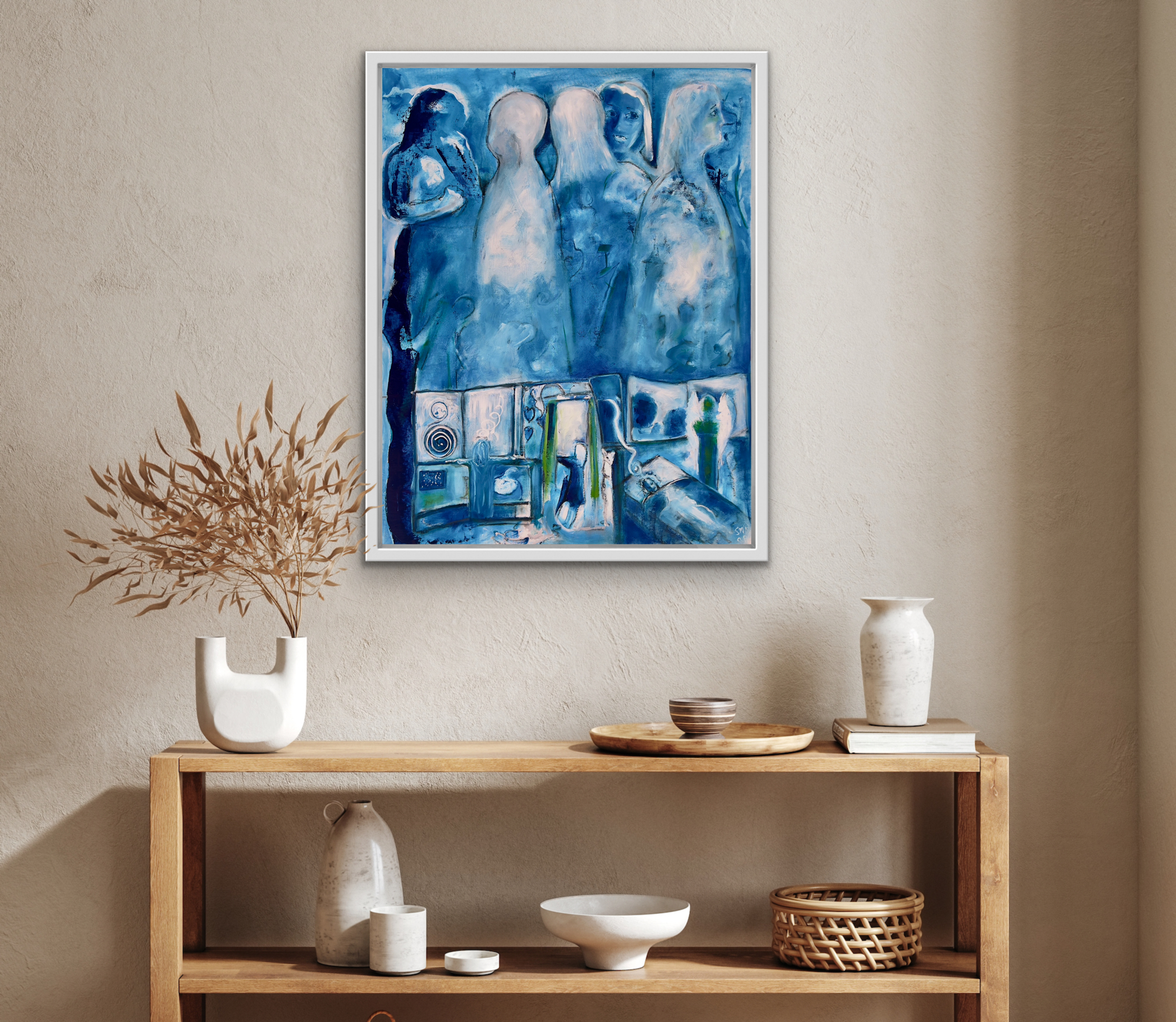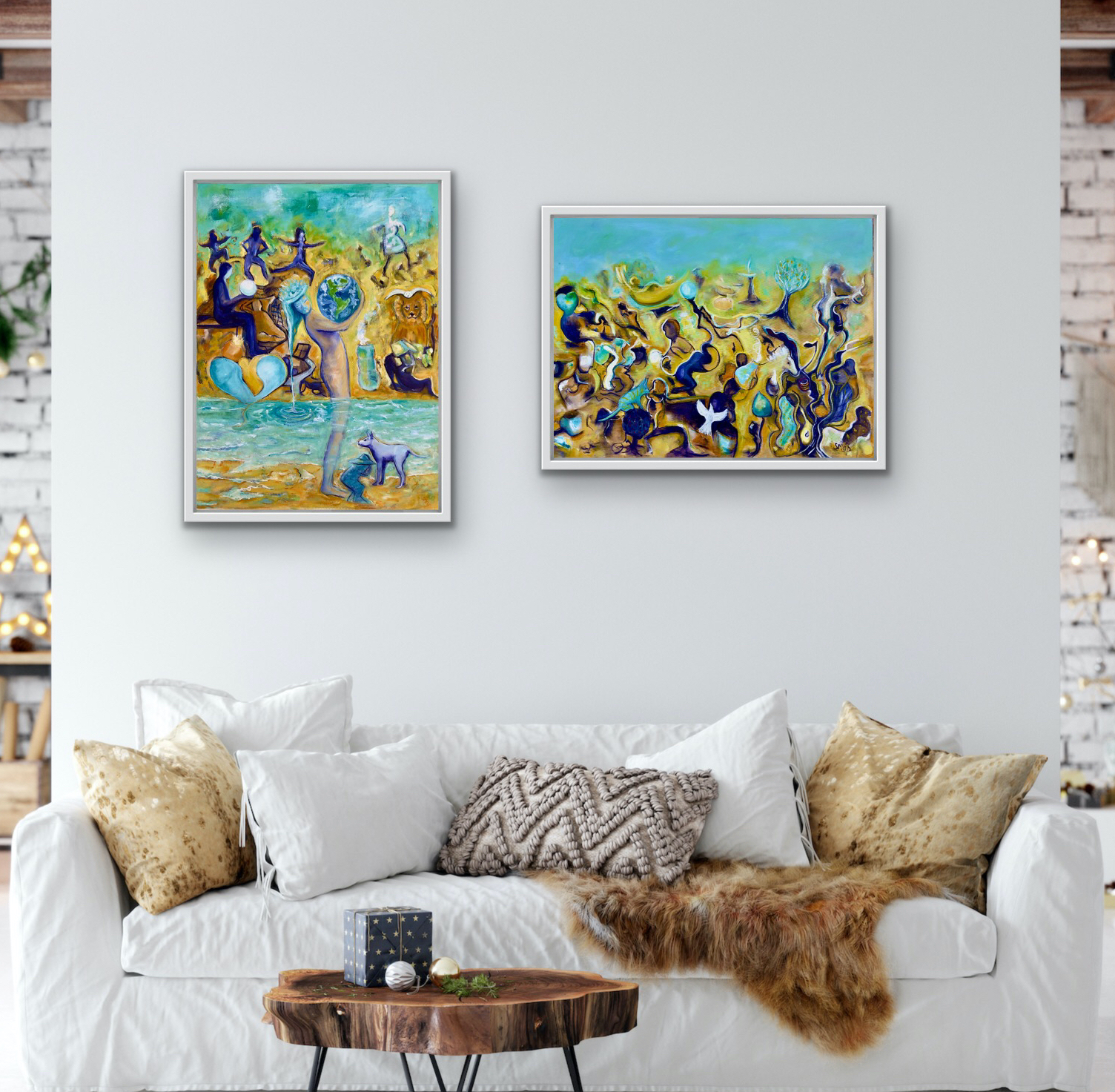 This painting is reminiscent of Marc Chagall.. not deliberate, it's just what comes out of me - I think it will look stunning on your wall! I've shown how it will look stretched and unframed.